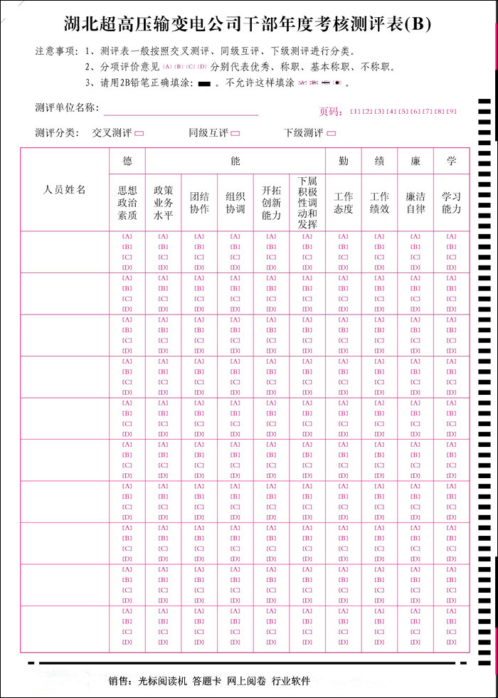 應(yīng)用軟件齊全:除隨機(jī)配備的驅(qū)動(dòng)程序、測(cè)試軟件、信息卡格式編輯軟件、通用閱卷軟件外,還有教學(xué)評(píng)估軟件、學(xué)生心理測(cè)評(píng)軟件、學(xué)籍管理軟件、干部民主測(cè)評(píng)軟件等多個(gè)軟件供用戶選擇。