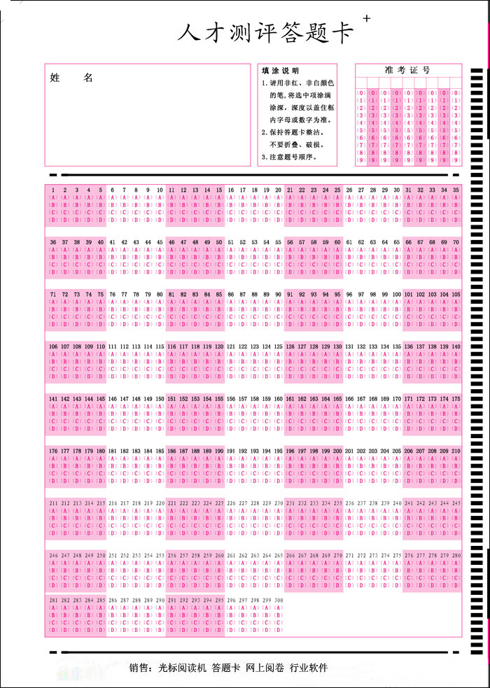 我公司真正符合閱讀機讀卡規范:品科答題卡的式樣,是根據輸入計算機的信息并按照光標閱讀機的設計規范所要求的格式而設計的。